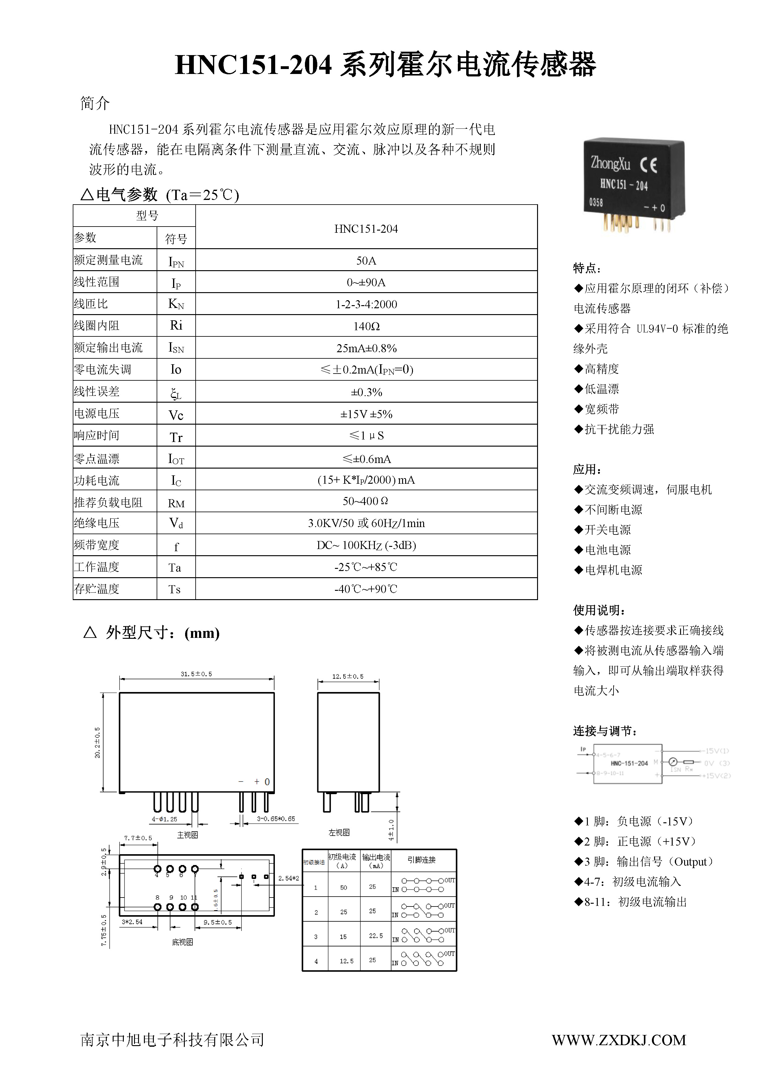 HNC151-204系列霍爾電流傳感器是應(yīng)用霍爾效應(yīng)原理的新一代電流傳感器,能在電隔離條件下測(cè)量直流、交流、脈沖以及各種不規(guī)則波形的電流。